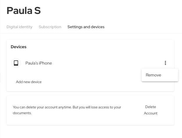 You can remove a device if you don’t need it anymore by tapping 3-dots button and clicking Remove.