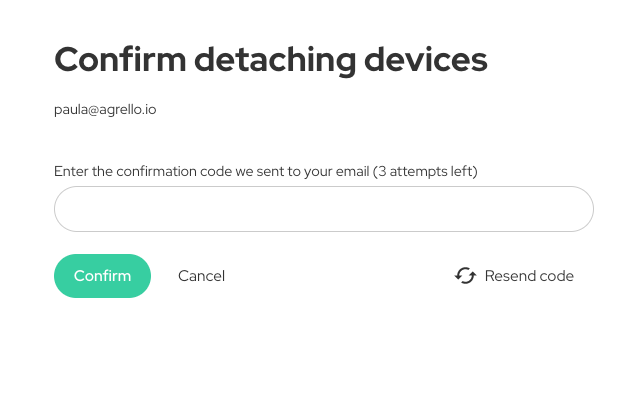 You are logged in to Agrello web app and all your devices are now removed. You can check this under Account → Settings and devices.