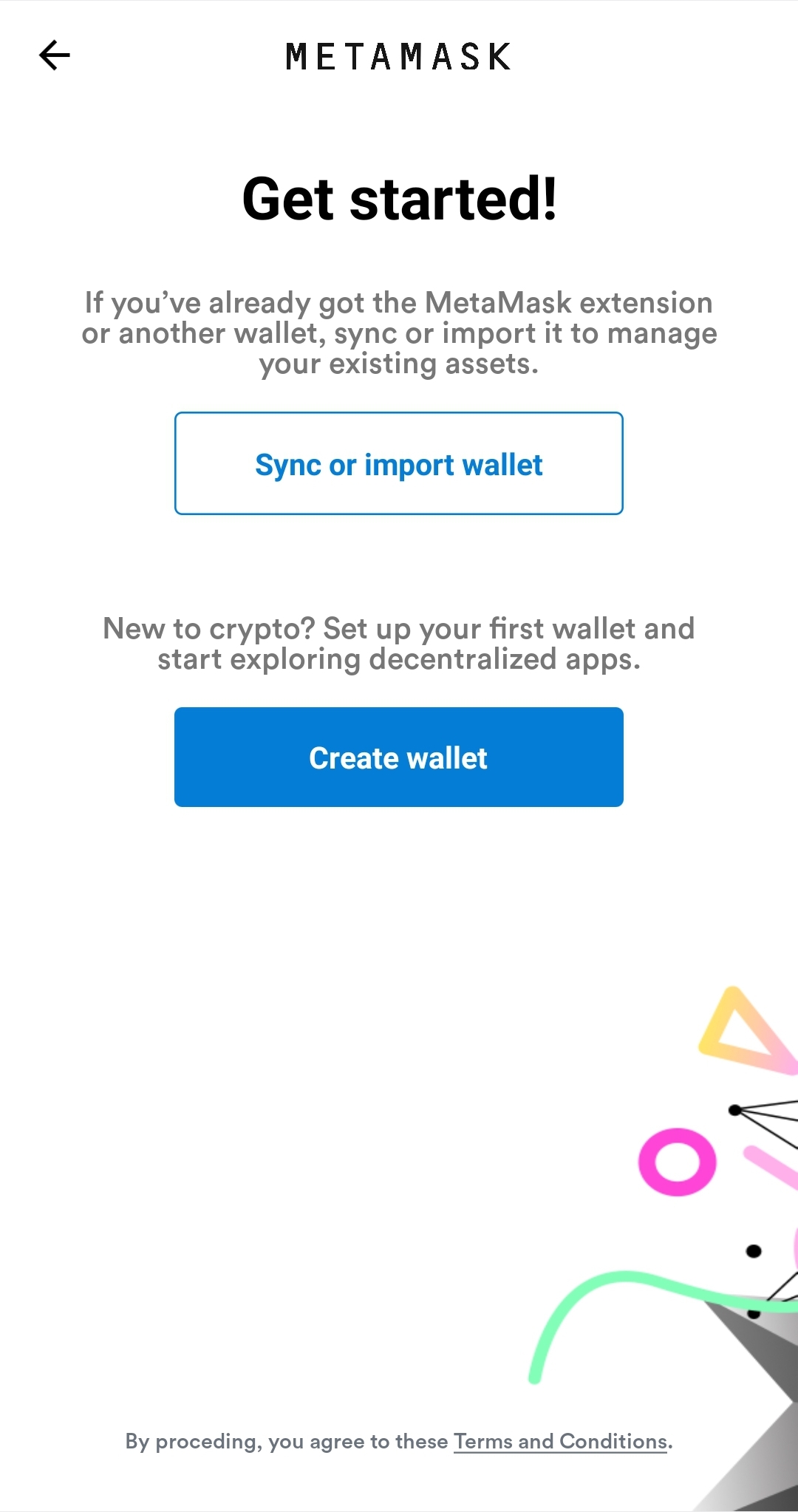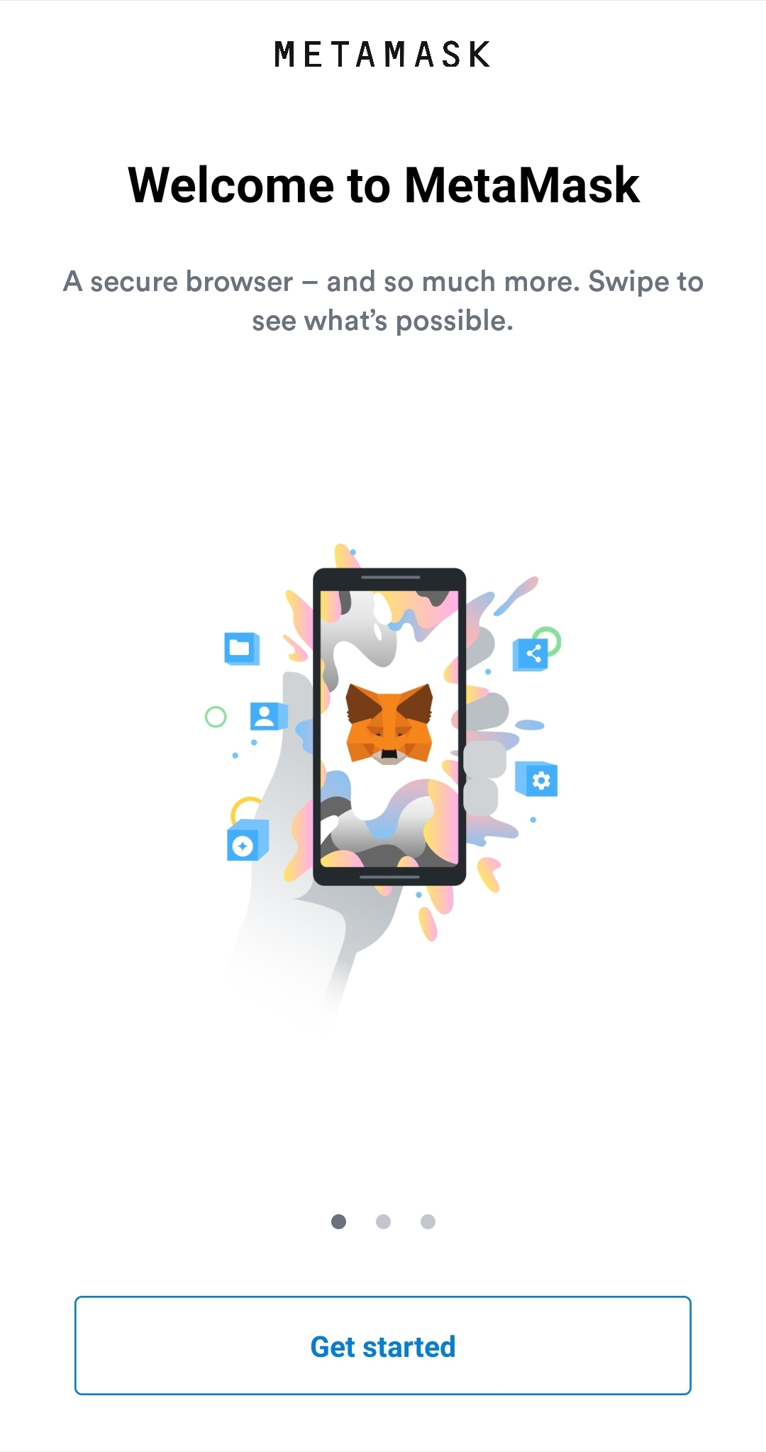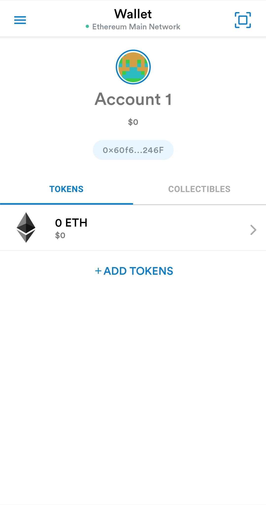 In Apple App store or Google Play, look for Metamask. Install Metamask and open it. You should end up in the wallet page, where there’s a button “+Add tokens”