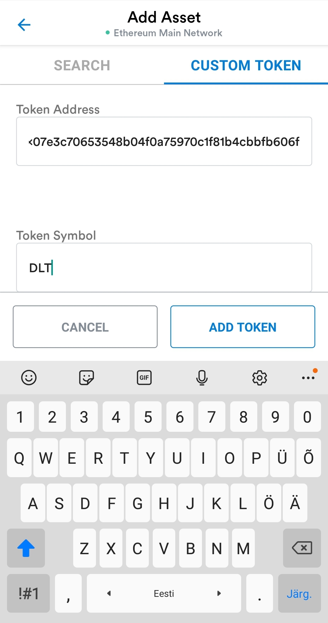In most of such wallets, the token account must be set up using DLT ERC-20 contract address, which is 0x07e3c70653548b04f0a75970c1f81b4cbbfb606f.