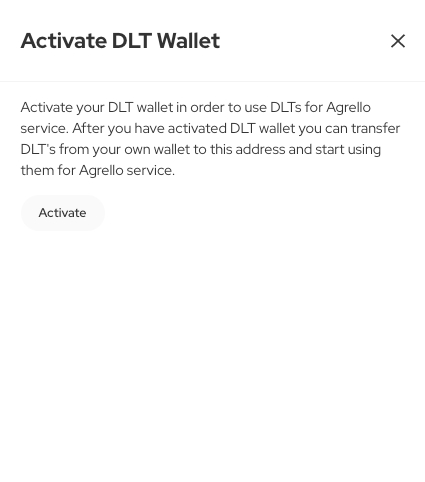 DLT wallet is a regular Ethereum wallet created and owned by Agrello for solely using DLTs for Agrello services. You can equal it to a dedicated service account in business accounting.