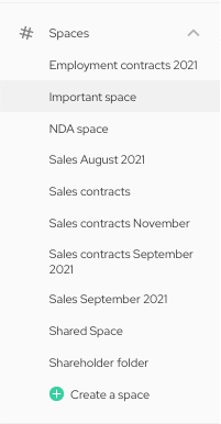 Spaces can also be considered as virtual data rooms, in which you can collaborate with your teammates or business partners on a project and keep track of documents that need to be signed.